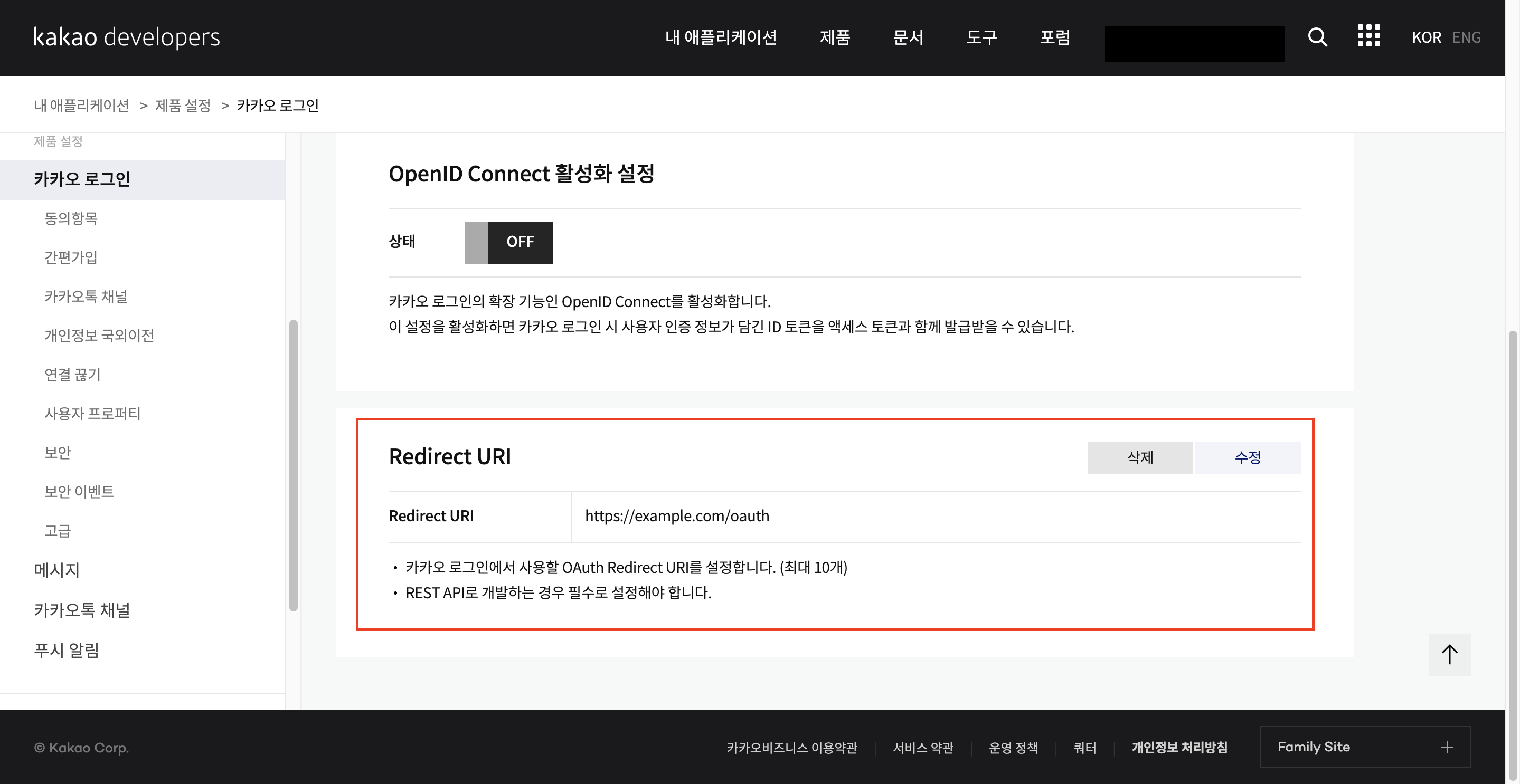 OpenID Connect활성화하면 토큰을 받을수도있고한데 일단 카카오톡 로그인창부터 띄우는거부터 할거니 활성화만 시켜준다.